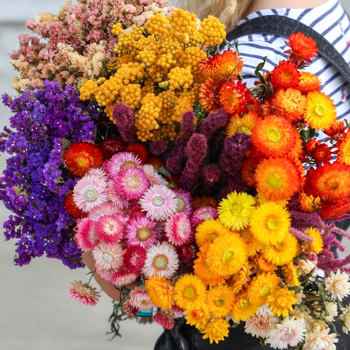 Discover an array of stunning dried flower bunches, meticulously handcrafted bouquets perfect for immediate display, and DIY kits to inspire creativity.