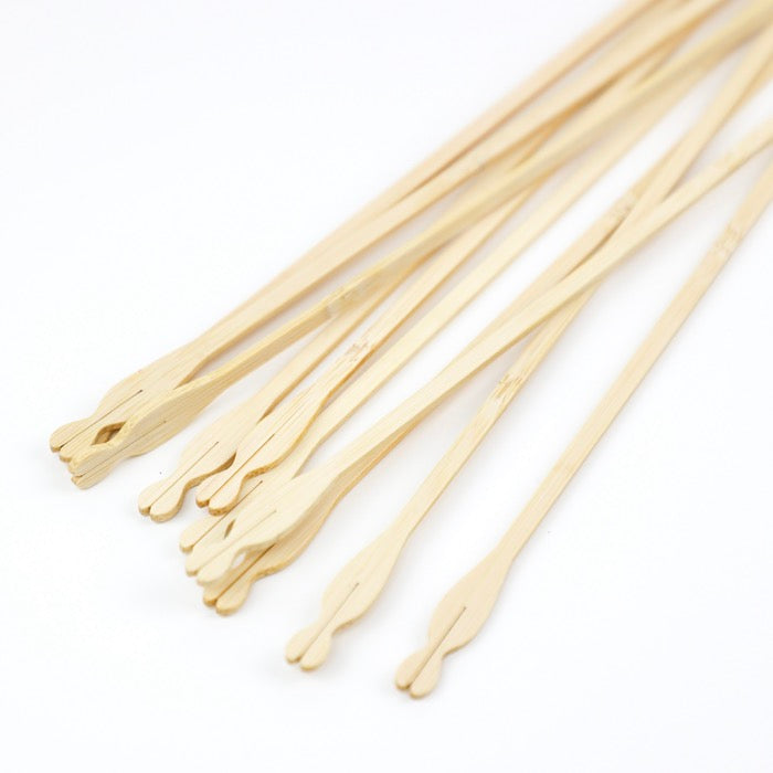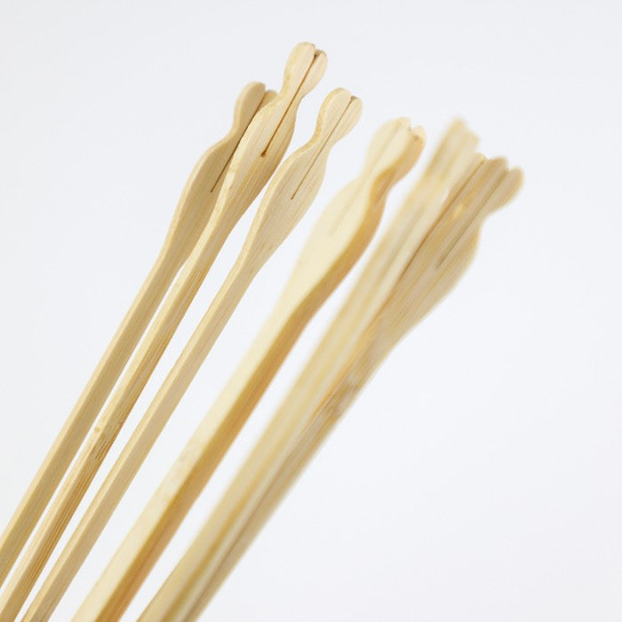 A pack of 10 bamboo flower picks for holding cards, signage, table signs or even menu displays.
