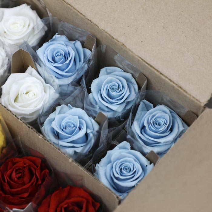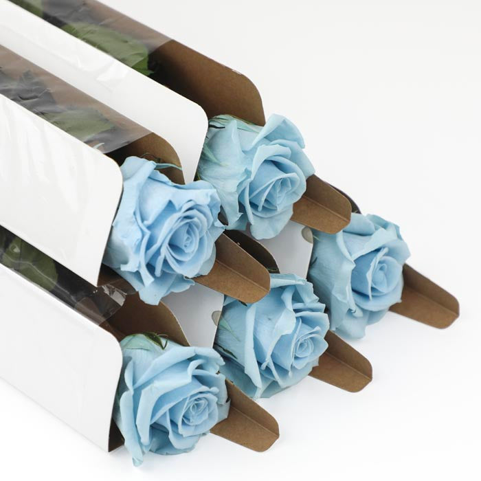 Light baby Blue Preserved Rose Stems that keep their colour and shape for up to 12 months.