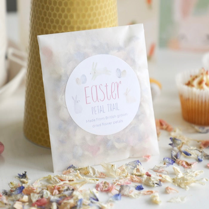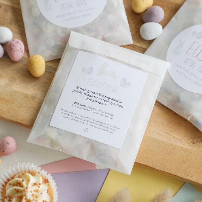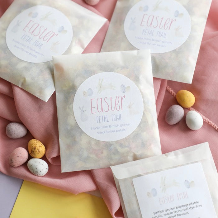 Easter themed sachets filled with biodegradable dried flower petals for decoration and Easter trails with the children.