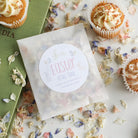 A ready for retail pack of 25 of pastel biodegradable confetti sachets, crafted solely from our very own handpicked petals. These sachets comprise a soft, pretty mix of our ivory, pale pink and baby blue delphinium petals.