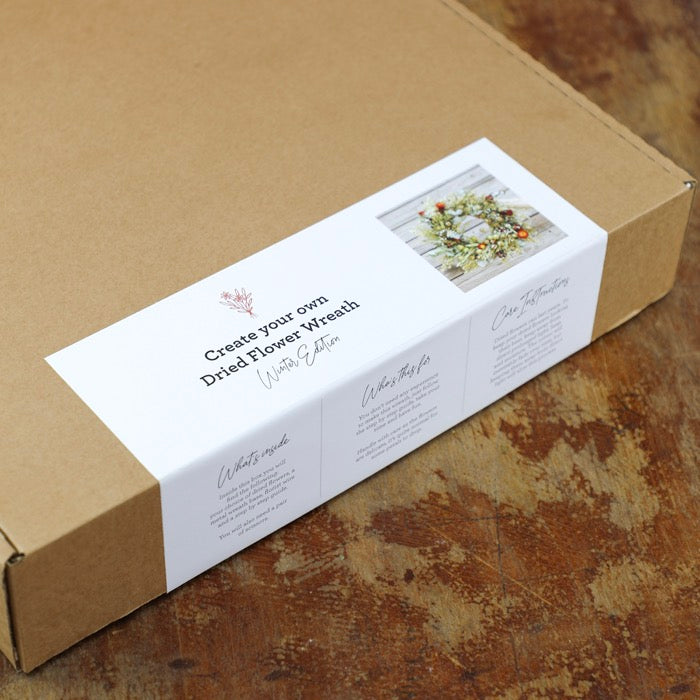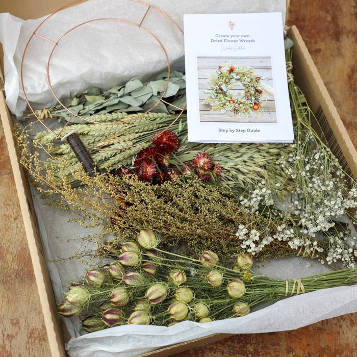 Ideal gifting for someone that loves to get crafty. This easy to follow DIY Wreath Kit has everything you need to create a stunning long-lasting dried flower circular wreath for a front door, window or table decoration.