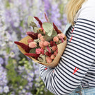 A beautiful handmade dried flower bouquet in our Bramble colour way, ready for the shop floor. This stunning bouquet features beautiful pink, burgundy and green tones.