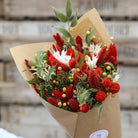 Capture the spirit of Christmas with this beautiful handmade dried flower bouquet, designed to reflect the season’s rich colours and timeless charm. With festive reds, classic greens, and elegant whites, this bouquet makes a striking seasonal arrangement.