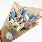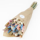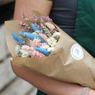 Inspired by a popular colourful pastel trend for interior design. This pretty pastel bouquet has been put together with a range of dried flowers. The dried flower bouquet has then carefully wrapped with kraft paper as a final touch to provide protection and customer appeal.