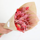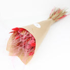 A beautiful handmade dried flower bouquet in our Valentine's colour way, ready for the shop floor. This stunning bouquet features a mix of bright pinks and reds, the ultimate show of love and affection.