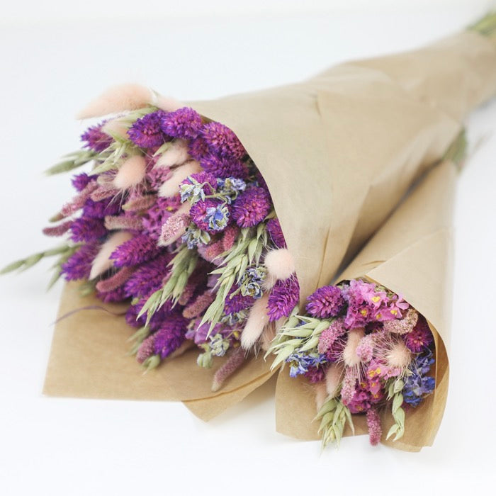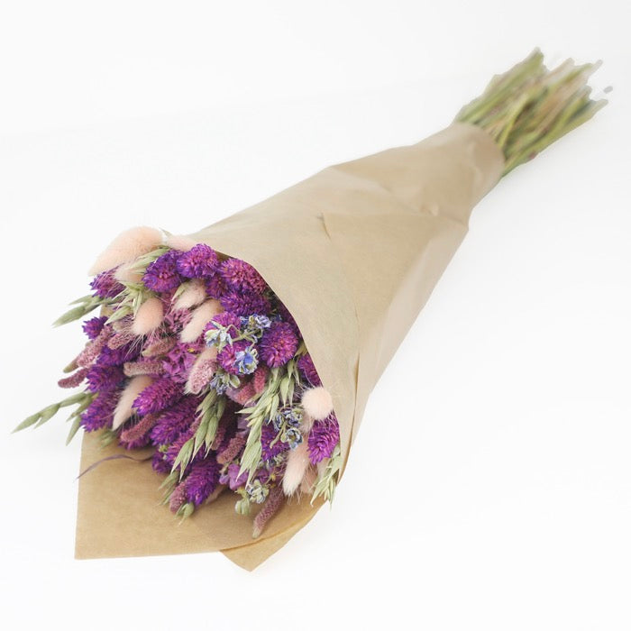 This Violet bouquet has been put together with a wonderful range of natural dried flowers, it’s then wrapped carefully with Kraft Paper as a final touch.