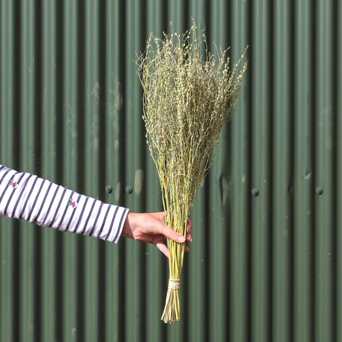 A box of 10 Green dried Lepidium Bunches grown on our Shropshire based flower farm. These dried flowers will naturally mellow to a golden tone over time.