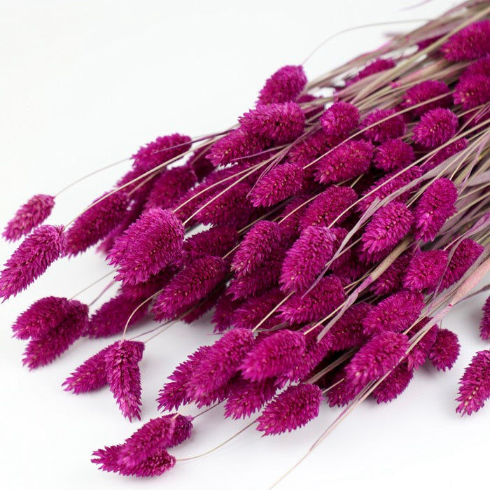 This delightful hot pink phalaris, has been dyed using non-toxic water-based inks, to achieve its vivid colour. Colour transfer is likely on light surfaces, and when handling the bunches.