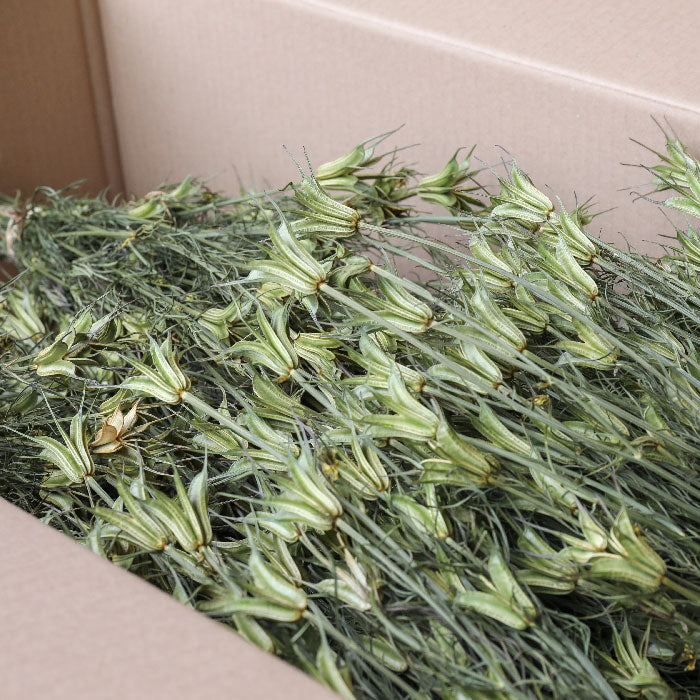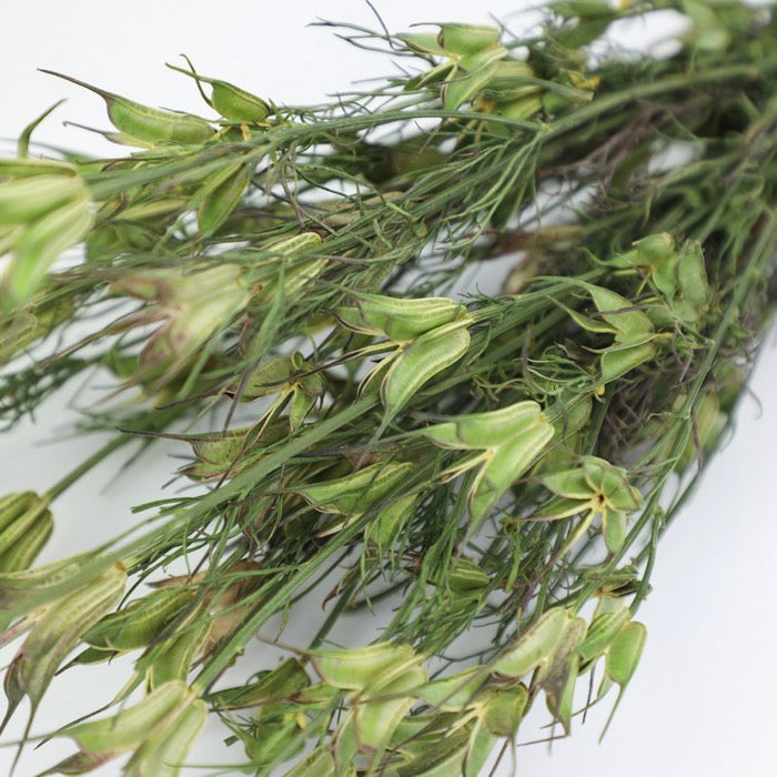 Dried Nigella Orientalis Bunch, often called "Love in the Mist," features striking, naturally green sculptural flowers.