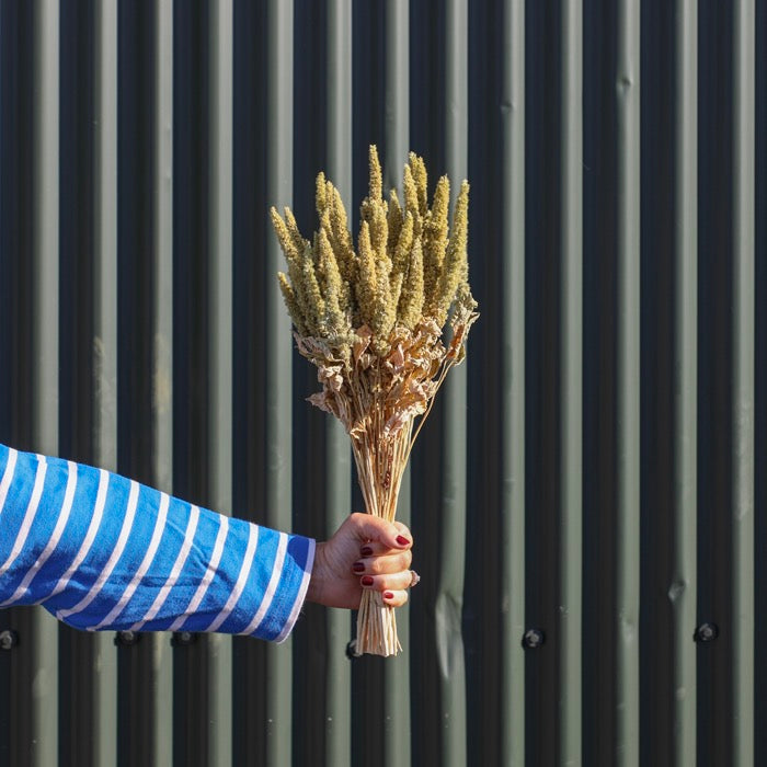This exotic looking ornamental grass features a natural muted green, perfect for adding shape, colour and structure to a floral display. Each stem has multiple smaller long sections coming off it.