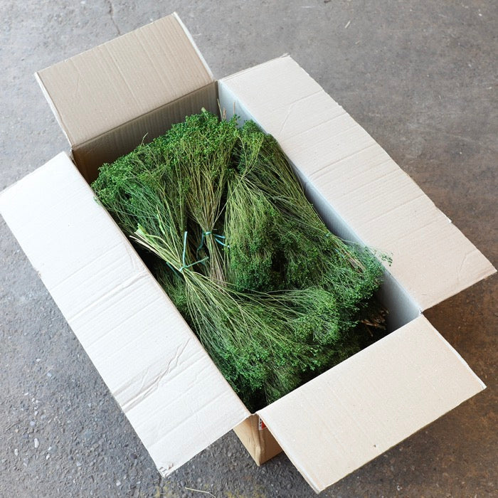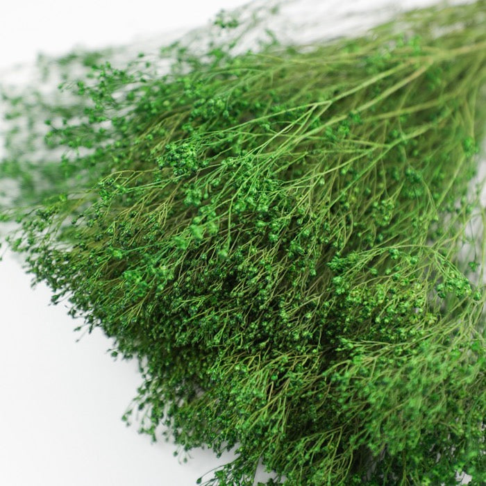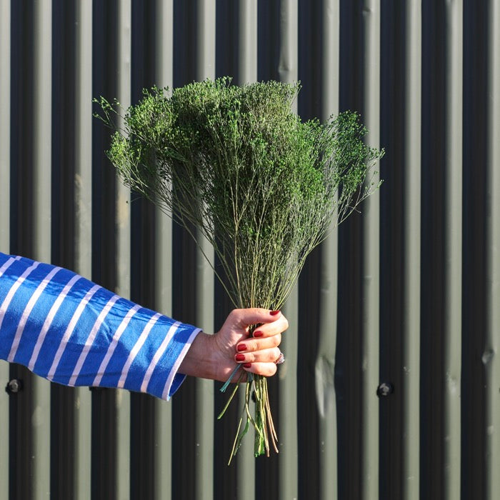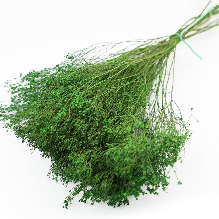 This dainty bunch of dyed Green Broom Bloom is an exceptionally versatile variation of dried flower, often compared to Gypsophila but notably more dense. Perfect for simultaneously bulking out bouquets and floral displays whilst still maintaining a delicate touch.