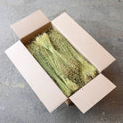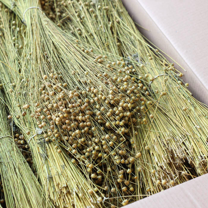 A bulk box of 20 natural dried Linum bunches, also known as Flax, Linseed and Bubble Flax.