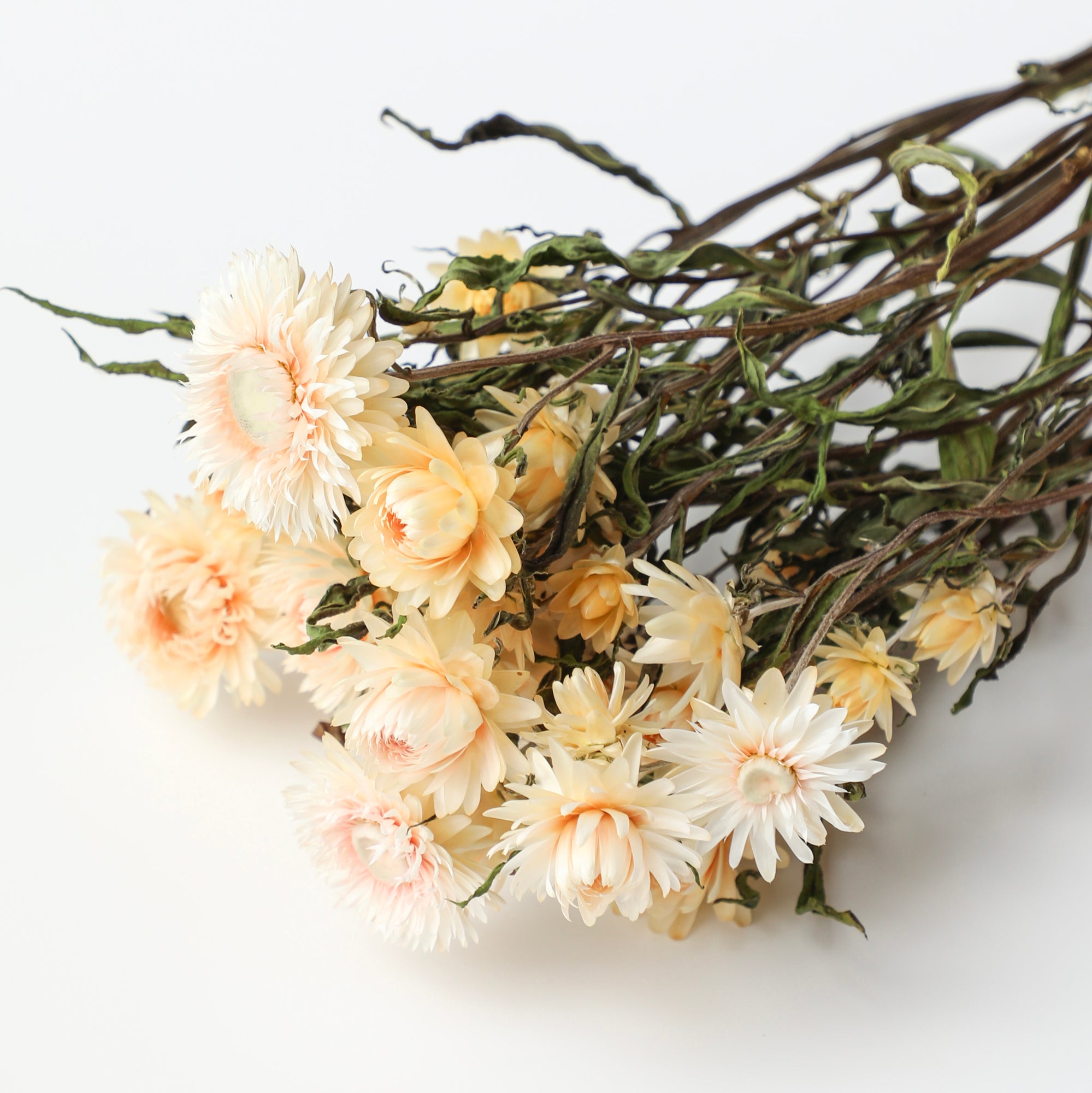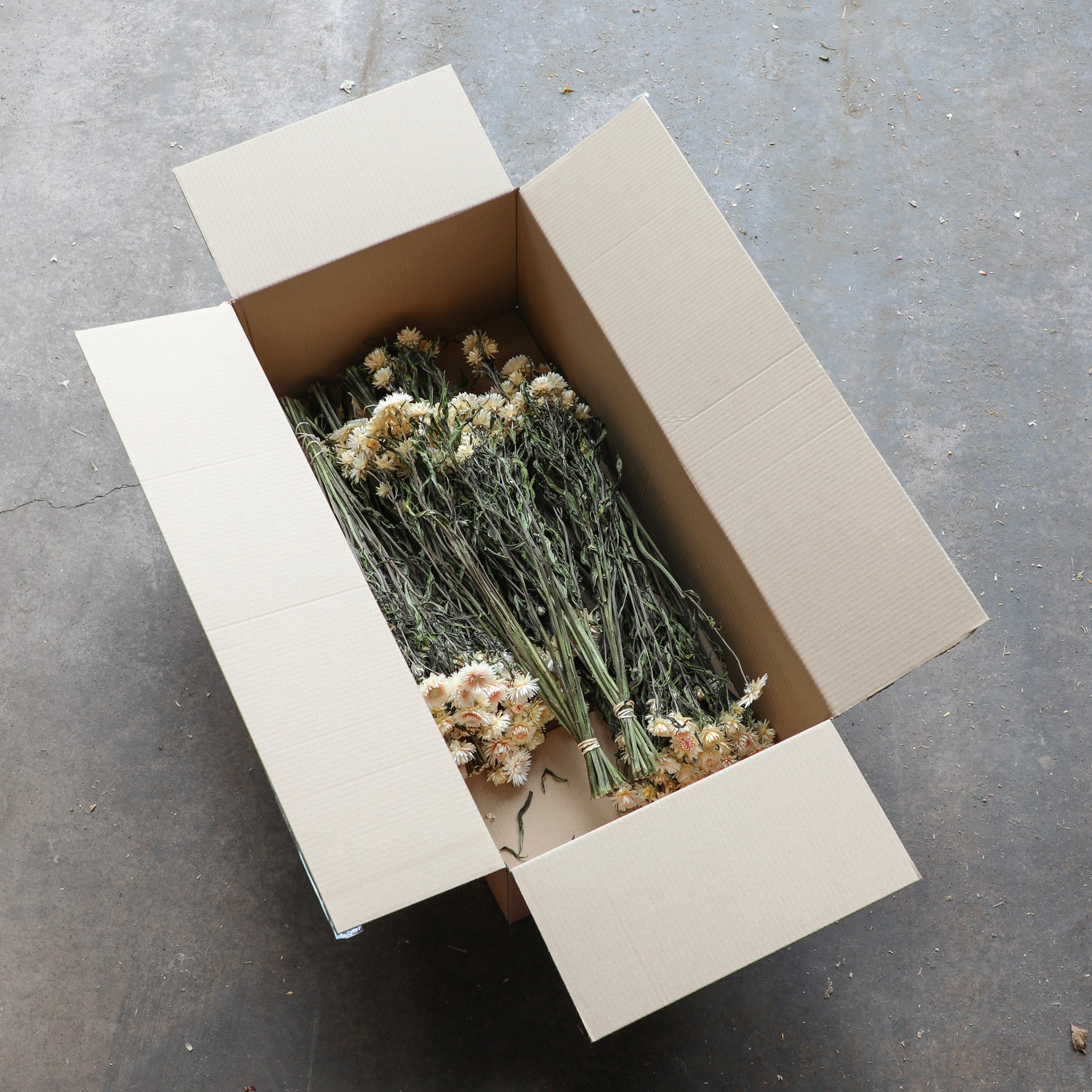 This dried dusky blush pink Helichrysum comes ready bunched in a box of 10. This particular variety has been picked by hand on our farm here in Shropshire, making it a local and more conscious choice amongst other options in the realm of dried flowers.