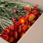 This dried red Helichrysum comes ready bunched in a box of 10. This particular variety has been picked by hand on our farm here in Shropshire, making it a local and more conscious choice amongst other options in the realm of dried flowers.