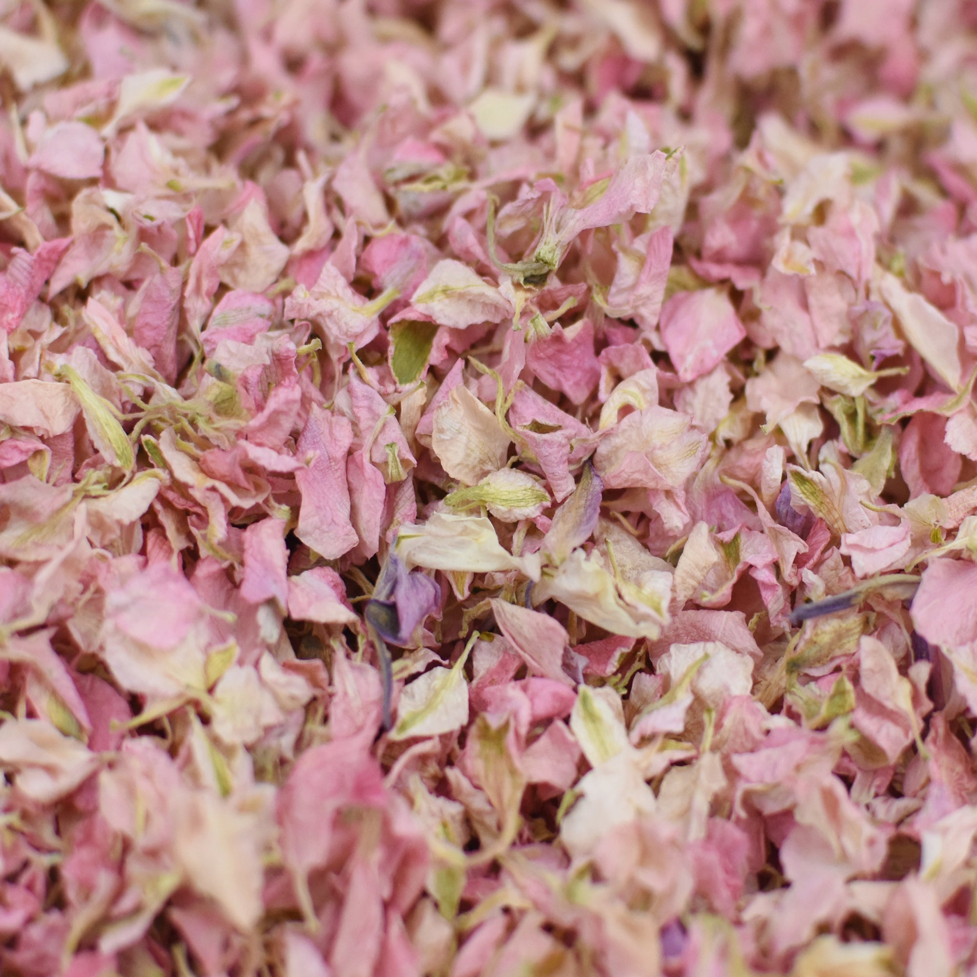 Beautifully dried light pink Delphinium/Larkspur Petals which are 100% biodegradable, natural and eco-friendly with no added dyes. Grown, hand picked and dried on the LSF Flower Farm.