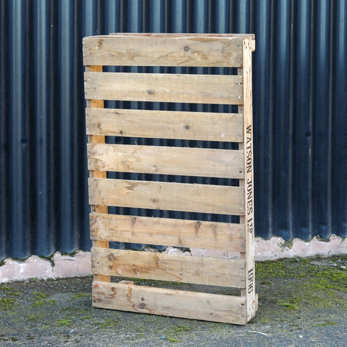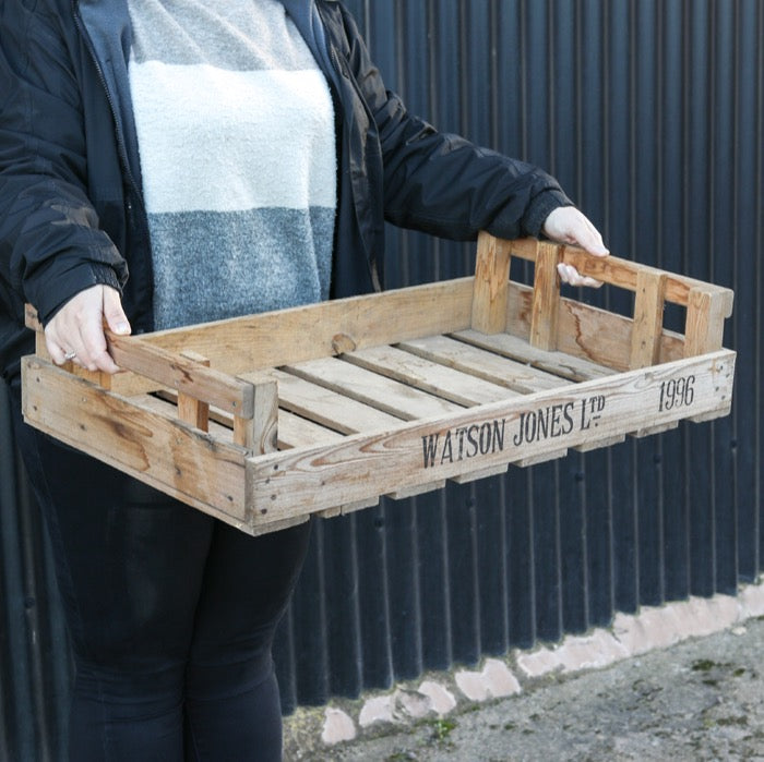 Our range of crates is moderately eclectic as all have differing attributes when it comes to colour depth, grain pattern, and typographical stamps and dates, which is a testament to their authentic nature. As a result, we can't guarantee that all the crates you receive will be the same, but this just adds to their charm.