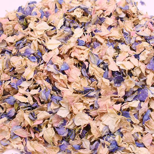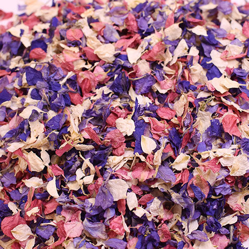 Available with your choice of dried flower petals. All these petals are 100% biodegradable and processed onsite to ensure you are getting the highest quality product available. All petals have a long- lasting shelf life.