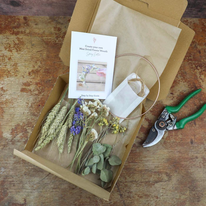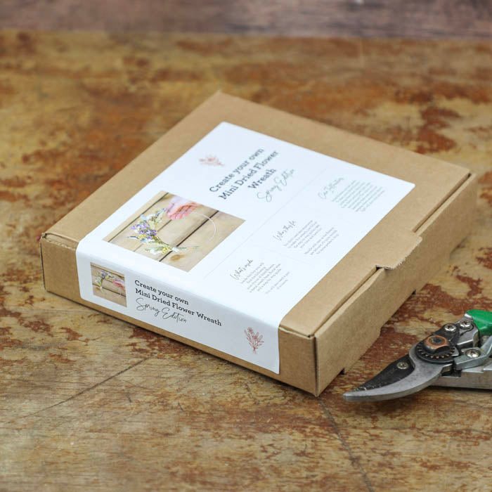 Spring Edition MINI DIY Dried Flower Wreath Kit. Ideal gifting for someone that loves to get crafty. This kit is the perfect price point for an impulse purchase.