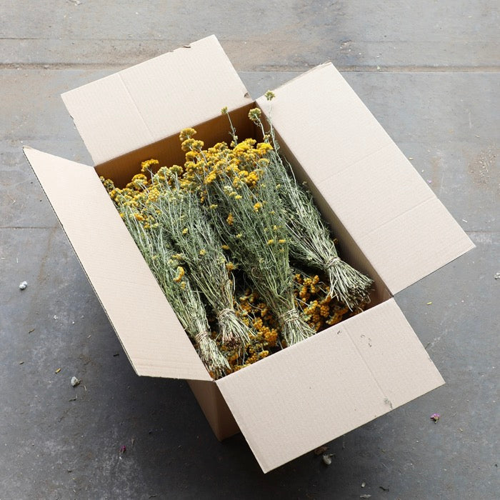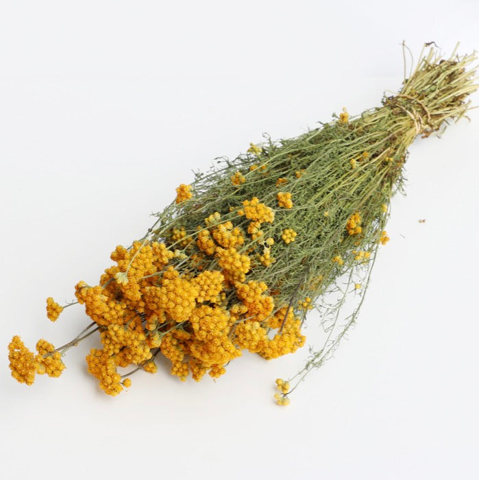 A stunning yellow dried Lonas bunch, also known as yellow ageratum. Grown, harvested and dried on our Shropshire based farm.