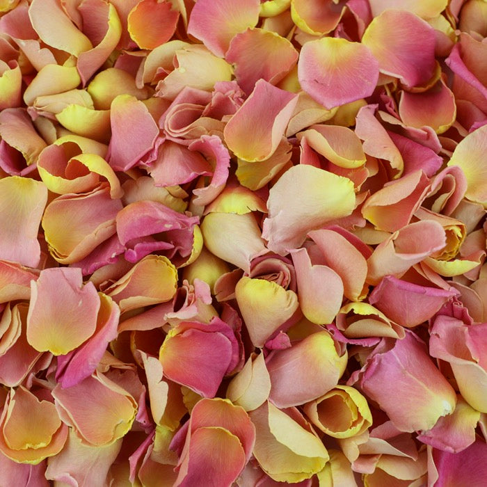 Beautifully freeze dried Coral Rose Petals which are 100% biodegradable and dye-free. Two tone dried rose petals featuring delicate pinks into orange and hints of yellow. Imagine a beautiful sunset in a petal.