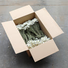 A box of 30 white Acroclinium bunches, grown on our Shropshire flower farm. Perfect for adding to floral displays, creative projects. Please handle with extra care as these beautiful flowers are very delicate.