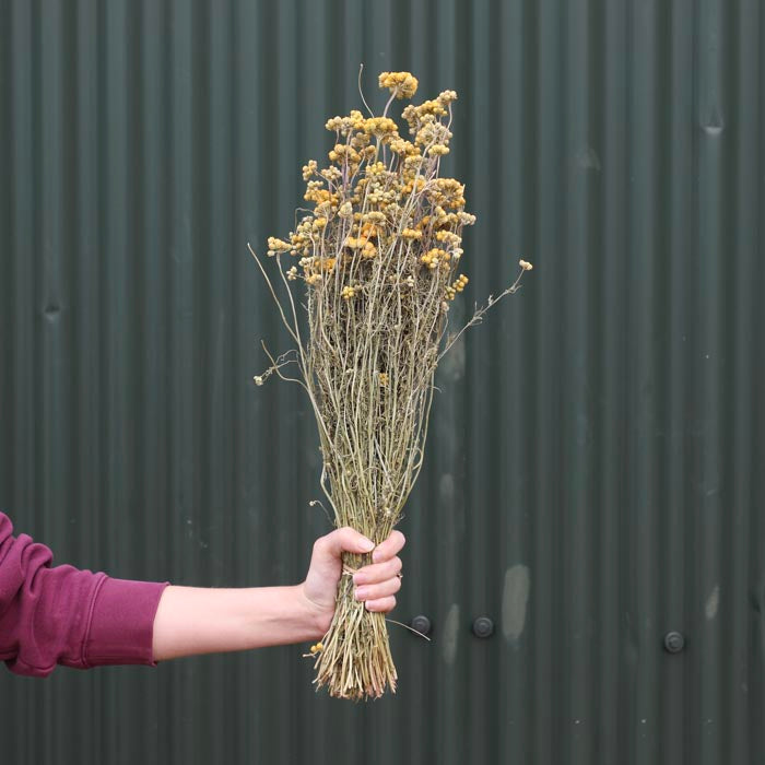 A stunning yellow dried Lonas bunch, also known as yellow ageratum. Grown, harvested and dried on our Shropshire based farm.
