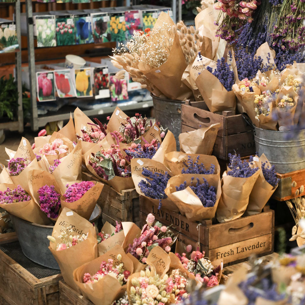 Discover an array of stunning dried flower bunches, meticulously handcrafted bouquets perfect for immediate display, and DIY kits to inspire creativity.